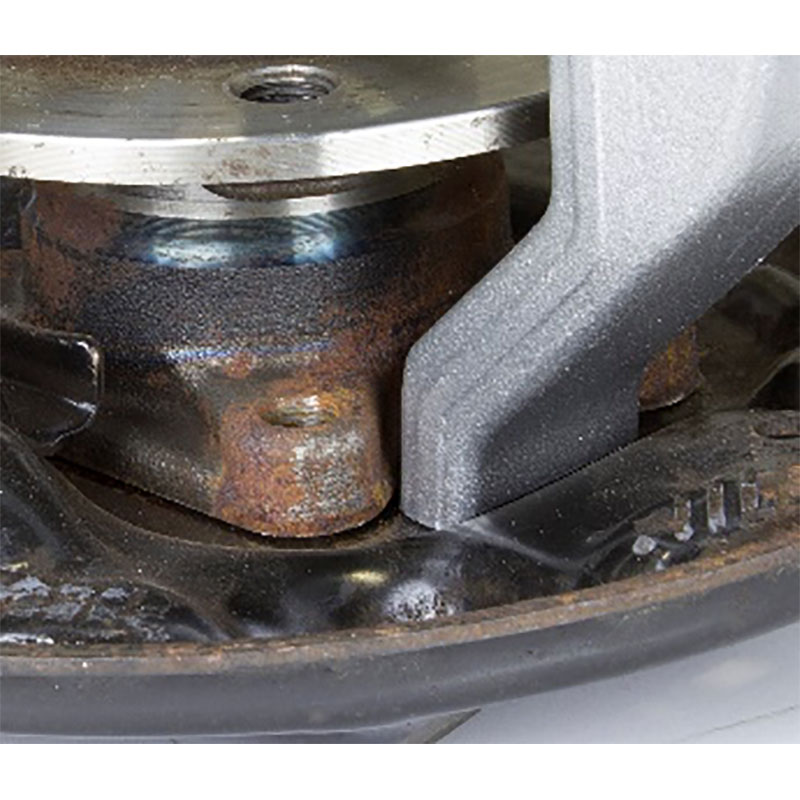 Some brake shields are uneven due to drum brakes or parking brake with drums. These need a more precise press surface to avoid damaging the shield. Salty water, mixing of material and tight fittings is a huge problem for many shops. With the right tool it’s a simple job in a few minutes!